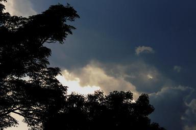 Keywords: sky clouds dark layered sunset light blues tree