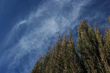 Keywords: sky clouds landscape field cypress nature blue look up calm serenity white clouds
