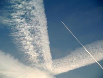 Keywords: sky contrail flyer jets blue flight movements aircraft clouds fly air traffic