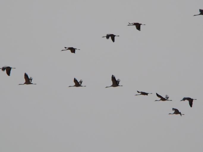 Keywords: sky cranes spain migration birds walk open air