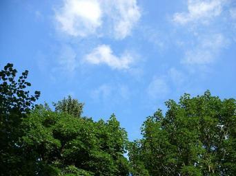 Keywords: sky forest trees clouds mood view blue green clear nice weather summer