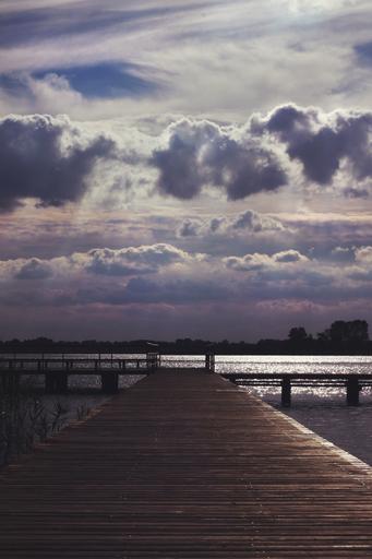 Keywords: sky lake catwalk clouds woods