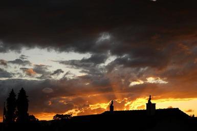Keywords: sky sunset clouds abendstimmung romance sun blue spotlight yellow red orange home chimney roof