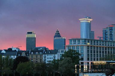 Keywords: skyline frankfurt red town center architecture city skyscrapers sky skyscraper main outlook cityscape modern frankfurt am main germany night sunset reddish mood dusk romantic afterglow evening sky abendstimmung dramatic