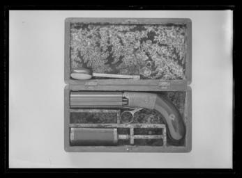 | Keywords: Slaglåsrevolver, sexpipig, s.k - Livrustkammaren - 34840.tif Pipknippe av brunerat stål sex slätborrade pipor vid mynningen stämplat 8 Axelskruv med blånerat huvud I bakänden inskruvat blånerade tändhattsnipplar <br/><br/>Rund låda av brunerat stål med graverad rankdekor på ovansidan oval stämpel text MOLANDER // MOTALA Ursprungligen blånerad ringformig avtryckare blånerad hake som spänner det blånerade slagstycket placerat på undersidan framför avtryckaren Låsdelar och kolvram stämplade 8 På lådans v sida ett lock som kan avlägsnas när kolvplattan tagits bort <br/><br/>Rundad böjd kolv med ram i ett med lådan graverad rankdekor på ryggen på änden en stjärna Kolvplattor av valnöt fästade med skruv från v sida Blånerade skruvplattor original caption ca 1850 steel e127 - eldvapen - pipa lås och stockbeslag material stål - walnut e3 - eldvapen - stock material valnöt size mm 199 size mm 87 pipa size mm 90 g 600 LRK MOLANDER MOTALA N A Molander place of origin original filename LN_B03074_005954 40931 inventory number LRK 4347 34840 CC0 Slaglåsrevolver sexpipig s k - Livrustkammaren - 34840-negative tif Percussion revolvers Revolvers images from Livrustkammaren Media contributed by LSH dim-with multiple size templates Media contributed by LSH unmatched creator Media contributed by LSH unmatched objKeyword Media contributed by LSH 2013-10 |