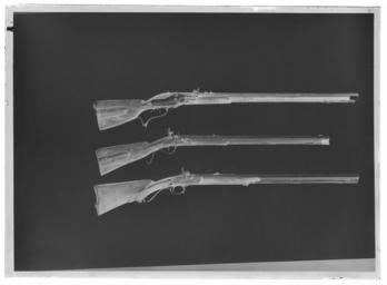 | Keywords: Slaglåsstudsare, Johannes Hult i Gravås, Värmland 1852 - Livrustkammaren - 35103-negative.tif Åttsidig räfflad pipa 8 räfflor förlängd med svansskruv l 71 mm Snidad dekor på översidan bladknippe på h sida ihoprullad drake i vars gap en tändhattstapp av blånerat stål är skruvad nedre delen av skruven är avbruten och borta Vidövergången till pipan inslaget en linje av guld Därframför på de tre övre faserna ett fält med kantlinjer av inslaget silver framtill dessutom guldbågar I fältet signatur till v graverat frakturstil Förferdigad af i mitten med inslaget guld J HULT till h graverat frakturstil Grafås Under kammaren stämplat 1852 Vid mynningen inslaget en linje av guld och en av silver Under pipan en spång l 451 mm med två rörformiga rörkor framför överrörkan en fjädrande spärr för laddstocken <br/>Riktmedel Sikte av blånerat stål justerbart i höjdled genom en skjutbar visare på en graderad tavla visaraxeln försedd med kugghjul som via drev överför rörelsen till siktet Justerbart också i sidled siktskåran är placerad på en rulle som går att skruva åt sidan Spolformigt korn av silver omgivet av en bård av inslaget guld <br/><br/>Slaglås med plant låsbleck överkanten framför fängpannans urtag rundad Graverad dekor i form avett rovdjur tiger med svans som fortsätter upp på fängpannan och är lindad runt fängpannans drake Plan hane med graverad rankdekor På hanhuvudet ligger ett plastiskt utformat pälsdjur svansen utgör tumgrepp Hanaxelns täckskruv saknas Slagfjäder och nöt blånerade <br/>Säkring Bakom hanen en skjutsäkring fingergrepp i form av ett djurkranium <br/>C-formig avtryckare med rundad framsida Långt avtryckarbleck framtill konturerat och graverat meden tropisk fågel <br/><br/>Mörkt brunbetsad halvstock av trä Kolvhalsen bakre del på undersidan skuren i form av ett hjorthuvud Beslag av stål med graverad dekor Bakplåt i form av en krokodil med svansen på kolvryggen Om framtänderna trycks in öppnas gapet Därinnanför finns ett runt hål d ca 9 mm ev för skruvnyckel På kolvhalsen beslag i form av en palm Spetsrörka i form av en stövare med en fågel i munnen Sidbleck i form av en drake Kraftigt svängd varbygel med lång bakre arm på den platta bygeln graverat ett lejon rembygel vid det bakre fästet framför den främre stolpen ett löstagbart stöd Inga utifrån synliga skruvar I pipnoten fastskruvat ett regelhus av mässing med två skjutreglar <br/><br/>Tillbehör <br/>Laddstock av stockens trä l 783 mm i ena änden ett mässingsbeslag l 107 mm med inskruvat huvud två graverade ringar samt bokstäverna A och B I andra änden likaså ett mässingsbeslag l 129 mm två avtagbara hylsor den främre åttsidig l 36 mm den bakre rund l 60 mm vänstergängad Vid övergången mellan det runda och det fasta beslaget graverad dekor 180 mm från spetsen islaget ett mässingsstift därovanför inslaget bokstaven A Ca 11 mm därnedanför ytterligare ett stift och bokstaven B Innanför den åttsidiga hylsan en plunderskruv och innanför den runda hylsan två fjädrar på den ena en klack <br/><br/>Isärtagning <br/>För isärtagning av bössan trycks avtryckaren framåt varvid stödet framför varbygeln lossnar Därunder finns en skruv med städformigt huvud som låser både låsbleck och pipa via utskott med gängade hål möjligen har en nyckel till skruven funnits innanför bakplåtens lucka Därefter dras laddstocken ut skyddshylsorna skruvas av den yttre hylsan skruvas på igen varefter laddstocken skjuts in i laddstocksnoten med den fjädrande klacken in mot pipan Laddstocken förs in till dess bokstaven B är vid mynningen klacken hakar då i den första regeln som skjuts ur klacken på pipan Den andra skjutregelns ten är avsedd att gå igenom hål i pipskruven men denna saknar nu hål varför denna regel saknar funktion Laddstocken dras sedan ur noten pipskruven skruvas ur åt vänster varefter pipan kan lyftas ur noten Pipan hålls förutom av regeln på plats med en klack på svansskruvbladets undersida som går ner i urtag i stålbeslaget på kolvryggen original caption 1852 wood e3 - eldvapen - stock material trä - steel e1247 - eldvapen - pipa lås riktmedel och beslag material stål - silver e8 - eldvapen - stockdekor material silver - brass e7 - eldvapen - stockbeslag material mässing - gold e8 - eldvapen - stockdekor material guld size mm 203 g 4520 size mm 795 pipa size mm 1225 LRK Basutställning Nordiska vapenformer Made in Sweden 2003 Förfärdigad af I Hult i Grafås anv e1 - eldvapen - pipa; Johannes Hult Förfärdigad af I Hult i Grafås anv e1 - eldvapen - pipa; Johannes Hult place of origin original filename LN_B05714_008594 39953 inventory number LRK 3376 35103 CC0 Slaglåsstudsare Johannes Hult i Gravås Värmland 1852 - Livrustkammaren - 35103 tif |