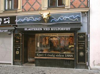 Keywords: Slagteren ved Kultorvet (København).JPG Slagteren ved Kultorvet København own 2012-10 Orf3us Frederiksborggade Shops in Copenhagen