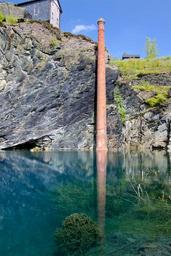 Keywords: slate park state break lehesten mine museum thuringia germany shale upper saale slate tourism building bergsee mirroring water clear water turquoise chimney