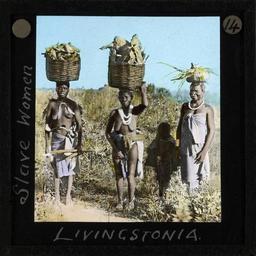 | Keywords: "Slave Women, Livingstonia", Malawi, ca.1910 (imp-cswc-GB-237-CSWC47-LS4-1-014).jpg en <br> Slave Women Livingstonia Malawi ca 1910 Photograph of three African women each carrying a basket on their head There is also a small child in the photograph Livingstonia was founded in 1894 by missionaries from the Free Church of Scotland The town of Livingstonia is located in the Northern Region district of Rumphi in Malawi The Synod of Livingstonia covers all of northern Malawi ; This belongs to a series of Church of Scotland Foreign Missions Committee lantern slides relating to Rev Donald Fraser 1870-1933 Rev Donald Fraser the Scottish missionary was born in Argyllshire Scotland the son of a Free Church minister In his youth Rev Fraser helped found the Student Volunteer Movement in Britain and the World Student Christian Federation before beginning missionary service in Malawi with the Free Church of Scotland He worked in Malawi from 1896 until he returned to Scotland in 1925 He was first posted to Ekwendeni and later Embangweni Rev Fraser worked closely with the Ngoni people Photographer Unknown Filename imp-cswc-GB-237-CSWC47-LS4-1-014 tif Coverage date circa 1910 Part of collection International Mission Photography Archive ca 1860-ca 1960 Type images Part of subcollection Photographs from the Centre for the Study of World Christianity University of Edinburgh U K ca 1900-ca 1940s Repository name Centre for the Study of World Christianity Archival file impaunpub_Volume7/1463 url Repository address The University of Edinburgh School of Divinity New College Mound Place Edinburgh EH1 2LX United Kingdom Geographic subject country Malawi Format aacr2 1 lantern slide 8 x 8 cm Geographic subject continent Africa Rights Contact the repository for details Part of series Donald Fraser of Loudon LS4/1 Repository email divinity-CSWC ed ac uk Subject lcsh Keyword Women; Village communities Date created circa 1910 Publisher of the digital version University of Southern California Libraries Subject aat genre group portraits Format aat lantern slides Legacy record ID impa-m68511 Access conditions http //www ed ac uk/schools-departments/divinity/research/centres/world-christianity/collections-resources File GB 237 CSWC47/LS4/1/14 1910 author http //digitallibrary usc edu/cdm/ref/collection/p15799coll123/id/64584 PD-old-70-1923 Magic lantern images Images from USC Digital Library uploaded by Fæ International Mission Photography Archive ca 1860-ca 1960 Slaves History of Malawi |