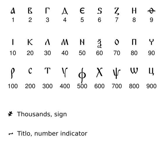 Keywords: Slavonic-numerals-en.svg en Slavonic numerals 2012-02-10 own Bibliofilotranstornado cc-zero Uploaded with UploadWizard Numerals Cyrillic glyphs in SVG