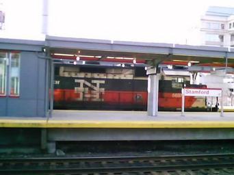 | Keywords: SLE at stamford.JPG SLE train at Stamford about to depart express to New Haven after arriving from Old Saybrook own 2008 03 20 Darienredsox Trains at Stamford Metro-North station Shore Line East trains EMD GP40-2H locomotives of Shore Line East March 2008 in the United States 2008 in Connecticut 2008 in rail transport in the United States McGinnis livery |