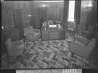 View Original:SLNSW 12328 Office desk and armchairs in an officials panelled office Ashfield Town Hall from Grace Bros.jpg (1400x1042)