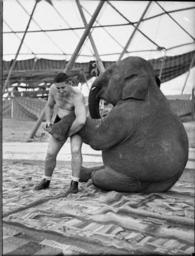 Keywords: SLNSW 19052 Wrestler Lofty Blomfield taken for Leichhardt Stadium.jpg en Wrestler Lofty Blomfield taken for Leichhardt Stadium 18/1/1937 http //www acmssearch sl nsw gov au/search/itemDetailPaged cgi itemID 19052 item <br/>http //www acmssearch sl nsw gov au/search/itemDetailPaged cgi itemID 37473 album <br/>http //www acmssearch sl nsw gov au/search/itemDetailPaged cgi itemID 395018 collection Creator Sam Hood This image may be used freely without requesting permission The State Library of New South Wales http //www acmssearch sl nsw gov au/search/itemPopLarger cgi itemID 19052 requests acknowledgement that the image is from the collections of the State Library of NSW Photographs 32812 images copied from glass and cellulose nitrate photonegatives The Library first purchased a large collection of negatives from Gladys Hood in 1972 This collection which included nitrate negatives which have subsequently been copied at DG 0N4 NCY 28-61 was transferred to a videodisc in 1991 and each image indexed individually Ted Hood assisted with the indexing; images were also identified using surviving studio registers The videodisc known as the Home Away disc or simply the Hood collection was digitised in 1996 and mounted on the Internet with upgraded index records via the online catalogue in December 1998 Purchased from Gladys Hood 1972 Copyright restrictions may apply - Photographs in this collection created before 1955 are all out of copyright Photographs created after 1955 are in copyright for the life of creator plus 70 years ; Please acknowledge - Mitchell Library State Library of New South Wales and Courtesy copyright holder 395018 Sam Hood photographic collection 1916-ca 1955 Approximately 44 800 negatives ; 7 309 photographic prints ; 3 boxes of textual material ; 6 film reels The Library first purchased a large collection of negatives from Gladys Hood in 1972 This collection which included nitrate negatives which have subsequently been copied at DG 0N4 NCY 28-61 was transferred to a videodisc in 1991 and each image indexed individually Ted Hood assisted with the indexing; images were also identified using surviving studio registers The videodisc known as the Home Away disc or simply the Hood collection was digitised in 1996 and mounted on the Internet with upgraded index records via the online catalogue in December 1998 ; Another collection from Sam Hood's studio was purchased in 1993 from Gladys Hood's descendants This comprised 7300 photoprints PXE 789 and ca 12000 negatives ON 204 Digitisation of important photographs in PXE 789 began Mar 2002 but ON 204 has not been digitised and must be viewed at the Library Samuel J Hood's 1872-1953 claimed to have been born 1870 but the South Australian Birth Index gives date as 20 August 1872 His career as a photographer began in the 1880s ; He ran a successful business in ships portraits these negatives are now held by the Australian National Maritime Museum Sydney and portraits of people in the late nineteenth - early twentieth century The State Library has little representation of this period In 1918 he acquired the Dalny Studio at 124 Pitt Street and began to expand his business into press photography providing photographs for the Sydney Mail the Australasian the Daily Guardian the Daily Telegraph Pictorial the Labor Daily the Sun the Daily News and the Sydney Morning Herald Press photography increasingly came to dominate his business and in 1934 he joined the Labor Daily for a short time as a full-time photographer engaging other staff to look after his studio ; By the mid-1930s most newspapers employed their own photographers and Hood's commissions from the papers began to decline Hood sought other kinds of commissions and won a number of long term advertising and commercial contracts He contributed a number of photographs of Sydney buildings and streets to Building Construction and Australasian Engineer during the late 1930s and early 1940s Hood also had extensive contacts in the entertainment industry who called upon him to document celebrity events and stars as well as theatre advertising Throughout his career he worked at the stock-in-trade for commercial photographers portraits weddings and even funerals ; A number of photographers worked for Dalny Studio some of these include Ernie Bowen Gus Daley Jack Lazern Lethington Maitland as well as Sam's own children Gladys and Ted ; For detailed biographical information about photographer Sam Hood see Sydney exposures through the eyes of Sam Hood his Studio 1925-1950 / Alan Davies Sydney State Library of New South Wales 1991 Out of copyright - Created before 1955 Photographs ; Please acknowledge - Mitchell Library State Library of New South Wales advertising photography; commercial photography; photojournalism 395018 Original item no NCY35/738 yes no PD-Australia PD-1996 Australia Images from the State Library of NSW album 37473 SLNSW media uploaded by User 99of9 Photographs by Sam Hood