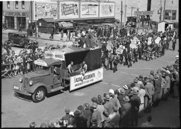 | Keywords: SLNSW 24206 Six Hour Day procession.jpg en Six Hour Day procession 3/10/1938 http //www acmssearch sl nsw gov au/search/itemDetailPaged cgi itemID 24206 item <br/>http //www acmssearch sl nsw gov au/search/itemDetailPaged cgi itemID 37473 album <br/>http //www acmssearch sl nsw gov au/search/itemDetailPaged cgi itemID 395018 collection Creator Sam Hood This image may be used freely without requesting permission The State Library of New South Wales http //www acmssearch sl nsw gov au/search/itemPopLarger cgi itemID 24206 requests acknowledgement that the image is from the collections of the State Library of NSW Photographs 32812 images copied from glass and cellulose nitrate photonegatives The Library first purchased a large collection of negatives from Gladys Hood in 1972 This collection which included nitrate negatives which have subsequently been copied at DG 0N4 NCY 28-61 was transferred to a videodisc in 1991 and each image indexed individually Ted Hood assisted with the indexing; images were also identified using surviving studio registers The videodisc known as the Home Away disc or simply the Hood collection was digitised in 1996 and mounted on the Internet with upgraded index records via the online catalogue in December 1998 Purchased from Gladys Hood 1972 Copyright restrictions may apply - Photographs in this collection created before 1955 are all out of copyright Photographs created after 1955 are in copyright for the life of creator plus 70 years ; Please acknowledge - Mitchell Library State Library of New South Wales and Courtesy copyright holder 395018 Sam Hood photographic collection 1916-ca 1955 Approximately 44 800 negatives ; 7 309 photographic prints ; 3 boxes of textual material ; 6 film reels The Library first purchased a large collection of negatives from Gladys Hood in 1972 This collection which included nitrate negatives which have subsequently been copied at DG 0N4 NCY 28-61 was transferred to a videodisc in 1991 and each image indexed individually Ted Hood assisted with the indexing; images were also identified using surviving studio registers The videodisc known as the Home Away disc or simply the Hood collection was digitised in 1996 and mounted on the Internet with upgraded index records via the online catalogue in December 1998 ; Another collection from Sam Hood's studio was purchased in 1993 from Gladys Hood's descendants This comprised 7300 photoprints PXE 789 and ca 12000 negatives ON 204 Digitisation of important photographs in PXE 789 began Mar 2002 but ON 204 has not been digitised and must be viewed at the Library Samuel J Hood's 1872-1953 claimed to have been born 1870 but the South Australian Birth Index gives date as 20 August 1872 His career as a photographer began in the 1880s ; He ran a successful business in ships portraits these negatives are now held by the Australian National Maritime Museum Sydney and portraits of people in the late nineteenth - early twentieth century The State Library has little representation of this period In 1918 he acquired the Dalny Studio at 124 Pitt Street and began to expand his business into press photography providing photographs for the Sydney Mail the Australasian the Daily Guardian the Daily Telegraph Pictorial the Labor Daily the Sun the Daily News and the Sydney Morning Herald Press photography increasingly came to dominate his business and in 1934 he joined the Labor Daily for a short time as a full-time photographer engaging other staff to look after his studio ; By the mid-1930s most newspapers employed their own photographers and Hood's commissions from the papers began to decline Hood sought other kinds of commissions and won a number of long term advertising and commercial contracts He contributed a number of photographs of Sydney buildings and streets to Building Construction and Australasian Engineer during the late 1930s and early 1940s Hood also had extensive contacts in the entertainment industry who called upon him to document celebrity events and stars as well as theatre advertising Throughout his career he worked at the stock-in-trade for commercial photographers portraits weddings and even funerals ; A number of photographers worked for Dalny Studio some of these include Ernie Bowen Gus Daley Jack Lazern Lethington Maitland as well as Sam's own children Gladys and Ted ; For detailed biographical information about photographer Sam Hood see Sydney exposures through the eyes of Sam Hood his Studio 1925-1950 / Alan Davies Sydney State Library of New South Wales 1991 Out of copyright - Created before 1955 Photographs ; Please acknowledge - Mitchell Library State Library of New South Wales advertising photography; commercial photography; photojournalism 395018 Original item no NCY41/557 yes no PD-Australia PD-1996 Australia Images from the State Library of NSW album 37473 SLNSW media uploaded by User 99of9 Photographs by Sam Hood |