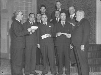 | Keywords: SLNSW 24686 Presentations.jpg en Presentations 7/1939 http //www acmssearch sl nsw gov au/search/itemDetailPaged cgi itemID 24686 item <br/>http //www acmssearch sl nsw gov au/search/itemDetailPaged cgi itemID 37473 album <br/>http //www acmssearch sl nsw gov au/search/itemDetailPaged cgi itemID 395018 collection Creator Sam Hood This image may be used freely without requesting permission The State Library of New South Wales http //www acmssearch sl nsw gov au/search/itemPopLarger cgi itemID 24686 requests acknowledgement that the image is from the collections of the State Library of NSW Photographs 32812 images copied from glass and cellulose nitrate photonegatives The Library first purchased a large collection of negatives from Gladys Hood in 1972 This collection which included nitrate negatives which have subsequently been copied at DG 0N4 NCY 28-61 was transferred to a videodisc in 1991 and each image indexed individually Ted Hood assisted with the indexing; images were also identified using surviving studio registers The videodisc known as the Home Away disc or simply the Hood collection was digitised in 1996 and mounted on the Internet with upgraded index records via the online catalogue in December 1998 Purchased from Gladys Hood 1972 Copyright restrictions may apply - Photographs in this collection created before 1955 are all out of copyright Photographs created after 1955 are in copyright for the life of creator plus 70 years ; Please acknowledge - Mitchell Library State Library of New South Wales and Courtesy copyright holder 395018 Sam Hood photographic collection 1916-ca 1955 Approximately 44 800 negatives ; 7 309 photographic prints ; 3 boxes of textual material ; 6 film reels The Library first purchased a large collection of negatives from Gladys Hood in 1972 This collection which included nitrate negatives which have subsequently been copied at DG 0N4 NCY 28-61 was transferred to a videodisc in 1991 and each image indexed individually Ted Hood assisted with the indexing; images were also identified using surviving studio registers The videodisc known as the Home Away disc or simply the Hood collection was digitised in 1996 and mounted on the Internet with upgraded index records via the online catalogue in December 1998 ; Another collection from Sam Hood's studio was purchased in 1993 from Gladys Hood's descendants This comprised 7300 photoprints PXE 789 and ca 12000 negatives ON 204 Digitisation of important photographs in PXE 789 began Mar 2002 but ON 204 has not been digitised and must be viewed at the Library Samuel J Hood's 1872-1953 claimed to have been born 1870 but the South Australian Birth Index gives date as 20 August 1872 His career as a photographer began in the 1880s ; He ran a successful business in ships portraits these negatives are now held by the Australian National Maritime Museum Sydney and portraits of people in the late nineteenth - early twentieth century The State Library has little representation of this period In 1918 he acquired the Dalny Studio at 124 Pitt Street and began to expand his business into press photography providing photographs for the Sydney Mail the Australasian the Daily Guardian the Daily Telegraph Pictorial the Labor Daily the Sun the Daily News and the Sydney Morning Herald Press photography increasingly came to dominate his business and in 1934 he joined the Labor Daily for a short time as a full-time photographer engaging other staff to look after his studio ; By the mid-1930s most newspapers employed their own photographers and Hood's commissions from the papers began to decline Hood sought other kinds of commissions and won a number of long term advertising and commercial contracts He contributed a number of photographs of Sydney buildings and streets to Building Construction and Australasian Engineer during the late 1930s and early 1940s Hood also had extensive contacts in the entertainment industry who called upon him to document celebrity events and stars as well as theatre advertising Throughout his career he worked at the stock-in-trade for commercial photographers portraits weddings and even funerals ; A number of photographers worked for Dalny Studio some of these include Ernie Bowen Gus Daley Jack Lazern Lethington Maitland as well as Sam's own children Gladys and Ted ; For detailed biographical information about photographer Sam Hood see Sydney exposures through the eyes of Sam Hood his Studio 1925-1950 / Alan Davies Sydney State Library of New South Wales 1991 Out of copyright - Created before 1955 Photographs ; Please acknowledge - Mitchell Library State Library of New South Wales advertising photography; commercial photography; photojournalism 395018 Original item no NCY43/452 yes no PD-Australia PD-1996 Australia Images from the State Library of NSW album 37473 SLNSW media uploaded by User 99of9 Photographs by Sam Hood |