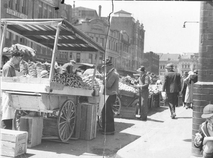 Keywords: SLNSW 42997 Three fruit barrows selling on a city street.jpg en Three fruit barrows selling on a city street ~ 1933 http //www acmssearch sl nsw gov au/search/itemDetailPaged cgi itemID 42997 item <br/>http //www acmssearch sl nsw gov au/search/itemDetailPaged cgi itemID 37473 album <br/>http //www acmssearch sl nsw gov au/search/itemDetailPaged cgi itemID 395018 collection Creator Sam Hood This image may be used freely without requesting permission The State Library of New South Wales http //www acmssearch sl nsw gov au/search/itemPopLarger cgi itemID 42997 requests acknowledgement that the image is from the collections of the State Library of NSW User 99of9/SLNSW_extra_metadata_template 42997 Three fruit barrows selling on a city street Home and Away - 988 c 1933 Photographs 32812 images copied from glass and cellulose nitrate photonegatives The Library first purchased a large collection of negatives from Gladys Hood in 1972 This collection which included nitrate negatives which have subsequently been copied at DG 0N4 NCY 28-61 was transferred to a videodisc in 1991 and each image indexed individually Ted Hood assisted with the indexing; images were also identified using surviving studio registers The videodisc known as the Home Away disc or simply the Hood collection was digitised in 1996 and mounted on the Internet with upgraded index records via the online catalogue in December 1998 Purchased from Gladys Hood 1972 Copyright restrictions may apply - Photographs in this collection created before 1955 are all out of copyright Photographs created after 1955 are in copyright for the life of creator plus 70 years ; Please acknowledge - Mitchell Library State Library of New South Wales and Courtesy copyright holder 395018 Sam Hood photographic collection 1916-ca 1955 Approximately 44 800 negatives ; 7 309 photographic prints ; 3 boxes of textual material ; 6 film reels The Library first purchased a large collection of negatives from Gladys Hood in 1972 This collection which included nitrate negatives which have subsequently been copied at DG 0N4 NCY 28-61 was transferred to a videodisc in 1991 and each image indexed individually Ted Hood assisted with the indexing; images were also identified using surviving studio registers The videodisc known as the Home Away disc or simply the Hood collection was digitised in 1996 and mounted on the Internet with upgraded index records via the online catalogue in December 1998 ; Another collection from Sam Hood's studio was purchased in 1993 from Gladys Hood's descendants This comprised 7300 photoprints PXE 789 and ca 12000 negatives ON 204 Digitisation of important photographs in PXE 789 began Mar 2002 but ON 204 has not been digitised and must be viewed at the Library Samuel J Hood's 1872-1953 claimed to have been born 1870 but the South Australian Birth Index gives date as 20 August 1872 His career as a photographer began in the 1880s ; He ran a successful business in ships portraits these negatives are now held by the Australian National Maritime Museum Sydney and portraits of people in the late nineteenth - early twentieth century The State Library has little representation of this period In 1918 he acquired the Dalny Studio at 124 Pitt Street and began to expand his business into press photography providing photographs for the Sydney Mail the Australasian the Daily Guardian the Daily Telegraph Pictorial the Labor Daily the Sun the Daily News and the Sydney Morning Herald Press photography increasingly came to dominate his business and in 1934 he joined the Labor Daily for a short time as a full-time photographer engaging other staff to look after his studio ; By the mid-1930s most newspapers employed their own photographers and Hood's commissions from the papers began to decline Hood sought other kinds of commissions and won a number of long term advertising and commercial contracts He contributed a number of photographs of Sydney buildings and streets to Building Construction and Australasian Engineer during the late 1930s and early 1940s Hood also had extensive contacts in the entertainment industry who called upon him to document celebrity events and stars as well as theatre advertising Throughout his career he worked at the stock-in-trade for commercial photographers portraits weddings and even funerals ; A number of photographers worked for Dalny Studio some of these include Ernie Bowen Gus Daley Jack Lazern Lethington Maitland as well as Sam's own children Gladys and Ted ; For detailed biographical information about photographer Sam Hood see Sydney exposures through the eyes of Sam Hood his Studio 1925-1950 / Alan Davies Sydney State Library of New South Wales 1991 Out of copyright - Created before 1955 Photographs ; Please acknowledge - Mitchell Library State Library of New South Wales advertising photography; commercial photography; photojournalism 395018 Original item no DG ON4/988 yes no PD-Australia PD-1996 Australia Images from the State Library of NSW album 37473 SLNSW media uploaded by User 99of9 Photographs by Sam Hood |