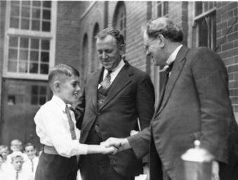 | Keywords: SLNSW 43234 Director of Education G Ross Thomas shakes hands with the dux of Drummoyne Primary School.jpg en Director of Education G Ross Thomas shakes hands with the dux of Drummoyne Primary School 1934-12-03 http //www acmssearch sl nsw gov au/search/itemDetailPaged cgi itemID 43234 item <br/>http //www acmssearch sl nsw gov au/search/itemDetailPaged cgi itemID 37473 album <br/>http //www acmssearch sl nsw gov au/search/itemDetailPaged cgi itemID 395018 collection Creator Sam Hood This image may be used freely without requesting permission The State Library of New South Wales http //www acmssearch sl nsw gov au/search/itemPopLarger cgi itemID 43234 requests acknowledgement that the image is from the collections of the State Library of NSW User 99of9/SLNSW_extra_metadata_template 43234 Director of Education G Ross Thomas shakes hands with the dux of Drummoyne Primary School Home and Away - 1227 03 Dec 1934 Photographs 32812 images copied from glass and cellulose nitrate photonegatives The Library first purchased a large collection of negatives from Gladys Hood in 1972 This collection which included nitrate negatives which have subsequently been copied at DG 0N4 NCY 28-61 was transferred to a videodisc in 1991 and each image indexed individually Ted Hood assisted with the indexing; images were also identified using surviving studio registers The videodisc known as the Home Away disc or simply the Hood collection was digitised in 1996 and mounted on the Internet with upgraded index records via the online catalogue in December 1998 Purchased from Gladys Hood 1972 Copyright restrictions may apply - Photographs in this collection created before 1955 are all out of copyright Photographs created after 1955 are in copyright for the life of creator plus 70 years ; Please acknowledge - Mitchell Library State Library of New South Wales and Courtesy copyright holder 395018 Sam Hood photographic collection 1916-ca 1955 Approximately 44 800 negatives ; 7 309 photographic prints ; 3 boxes of textual material ; 6 film reels The Library first purchased a large collection of negatives from Gladys Hood in 1972 This collection which included nitrate negatives which have subsequently been copied at DG 0N4 NCY 28-61 was transferred to a videodisc in 1991 and each image indexed individually Ted Hood assisted with the indexing; images were also identified using surviving studio registers The videodisc known as the Home Away disc or simply the Hood collection was digitised in 1996 and mounted on the Internet with upgraded index records via the online catalogue in December 1998 ; Another collection from Sam Hood's studio was purchased in 1993 from Gladys Hood's descendants This comprised 7300 photoprints PXE 789 and ca 12000 negatives ON 204 Digitisation of important photographs in PXE 789 began Mar 2002 but ON 204 has not been digitised and must be viewed at the Library Samuel J Hood's 1872-1953 claimed to have been born 1870 but the South Australian Birth Index gives date as 20 August 1872 His career as a photographer began in the 1880s ; He ran a successful business in ships portraits these negatives are now held by the Australian National Maritime Museum Sydney and portraits of people in the late nineteenth - early twentieth century The State Library has little representation of this period In 1918 he acquired the Dalny Studio at 124 Pitt Street and began to expand his business into press photography providing photographs for the Sydney Mail the Australasian the Daily Guardian the Daily Telegraph Pictorial the Labor Daily the Sun the Daily News and the Sydney Morning Herald Press photography increasingly came to dominate his business and in 1934 he joined the Labor Daily for a short time as a full-time photographer engaging other staff to look after his studio ; By the mid-1930s most newspapers employed their own photographers and Hood's commissions from the papers began to decline Hood sought other kinds of commissions and won a number of long term advertising and commercial contracts He contributed a number of photographs of Sydney buildings and streets to Building Construction and Australasian Engineer during the late 1930s and early 1940s Hood also had extensive contacts in the entertainment industry who called upon him to document celebrity events and stars as well as theatre advertising Throughout his career he worked at the stock-in-trade for commercial photographers portraits weddings and even funerals ; A number of photographers worked for Dalny Studio some of these include Ernie Bowen Gus Daley Jack Lazern Lethington Maitland as well as Sam's own children Gladys and Ted ; For detailed biographical information about photographer Sam Hood see Sydney exposures through the eyes of Sam Hood his Studio 1925-1950 / Alan Davies Sydney State Library of New South Wales 1991 Out of copyright - Created before 1955 Photographs ; Please acknowledge - Mitchell Library State Library of New South Wales advertising photography; commercial photography; photojournalism 395018 Original item no DG ON4/1227 SLNSW-image 43234 yes PD-Australia PD-1996 Australia Images from the State Library of NSW album 37473 SLNSW media uploaded by User 99of9 Photographs by Sam Hood |