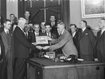| Keywords: SLNSW 43318 Commissioner for Railways Mr Hartigan presents workers on the Royal Train with a photograph of the train.jpg en Commissioner for Railways Mr Hartigan presents workers on the Royal Train with a photograph of the train 1934-12-10 http //www acmssearch sl nsw gov au/search/itemDetailPaged cgi itemID 43318 item <br/>http //www acmssearch sl nsw gov au/search/itemDetailPaged cgi itemID 37473 album <br/>http //www acmssearch sl nsw gov au/search/itemDetailPaged cgi itemID 395018 collection Creator Sam Hood This image may be used freely without requesting permission The State Library of New South Wales http //www acmssearch sl nsw gov au/search/itemPopLarger cgi itemID 43318 requests acknowledgement that the image is from the collections of the State Library of NSW User 99of9/SLNSW_extra_metadata_template 43318 Commissioner for Railways Mr Hartigan presents workers on the Royal Train with a photograph of the train Home and Away - 1311 10 Dec 1934 Photographs 32812 images copied from glass and cellulose nitrate photonegatives The Library first purchased a large collection of negatives from Gladys Hood in 1972 This collection which included nitrate negatives which have subsequently been copied at DG 0N4 NCY 28-61 was transferred to a videodisc in 1991 and each image indexed individually Ted Hood assisted with the indexing; images were also identified using surviving studio registers The videodisc known as the Home Away disc or simply the Hood collection was digitised in 1996 and mounted on the Internet with upgraded index records via the online catalogue in December 1998 Purchased from Gladys Hood 1972 Copyright restrictions may apply - Photographs in this collection created before 1955 are all out of copyright Photographs created after 1955 are in copyright for the life of creator plus 70 years ; Please acknowledge - Mitchell Library State Library of New South Wales and Courtesy copyright holder 395018 Sam Hood photographic collection 1916-ca 1955 Approximately 44 800 negatives ; 7 309 photographic prints ; 3 boxes of textual material ; 6 film reels The Library first purchased a large collection of negatives from Gladys Hood in 1972 This collection which included nitrate negatives which have subsequently been copied at DG 0N4 NCY 28-61 was transferred to a videodisc in 1991 and each image indexed individually Ted Hood assisted with the indexing; images were also identified using surviving studio registers The videodisc known as the Home Away disc or simply the Hood collection was digitised in 1996 and mounted on the Internet with upgraded index records via the online catalogue in December 1998 ; Another collection from Sam Hood's studio was purchased in 1993 from Gladys Hood's descendants This comprised 7300 photoprints PXE 789 and ca 12000 negatives ON 204 Digitisation of important photographs in PXE 789 began Mar 2002 but ON 204 has not been digitised and must be viewed at the Library Samuel J Hood's 1872-1953 claimed to have been born 1870 but the South Australian Birth Index gives date as 20 August 1872 His career as a photographer began in the 1880s ; He ran a successful business in ships portraits these negatives are now held by the Australian National Maritime Museum Sydney and portraits of people in the late nineteenth - early twentieth century The State Library has little representation of this period In 1918 he acquired the Dalny Studio at 124 Pitt Street and began to expand his business into press photography providing photographs for the Sydney Mail the Australasian the Daily Guardian the Daily Telegraph Pictorial the Labor Daily the Sun the Daily News and the Sydney Morning Herald Press photography increasingly came to dominate his business and in 1934 he joined the Labor Daily for a short time as a full-time photographer engaging other staff to look after his studio ; By the mid-1930s most newspapers employed their own photographers and Hood's commissions from the papers began to decline Hood sought other kinds of commissions and won a number of long term advertising and commercial contracts He contributed a number of photographs of Sydney buildings and streets to Building Construction and Australasian Engineer during the late 1930s and early 1940s Hood also had extensive contacts in the entertainment industry who called upon him to document celebrity events and stars as well as theatre advertising Throughout his career he worked at the stock-in-trade for commercial photographers portraits weddings and even funerals ; A number of photographers worked for Dalny Studio some of these include Ernie Bowen Gus Daley Jack Lazern Lethington Maitland as well as Sam's own children Gladys and Ted ; For detailed biographical information about photographer Sam Hood see Sydney exposures through the eyes of Sam Hood his Studio 1925-1950 / Alan Davies Sydney State Library of New South Wales 1991 Out of copyright - Created before 1955 Photographs ; Please acknowledge - Mitchell Library State Library of New South Wales advertising photography; commercial photography; photojournalism 395018 Original item no DG ON4/1311 SLNSW-image 43318 yes PD-Australia PD-1996 Australia Images from the State Library of NSW album 37473 SLNSW media uploaded by User 99of9 Photographs by Sam Hood |