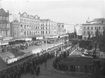 | Keywords: SLNSW 43826 State funeral leaves St Andrews Cathedral.jpg en State funeral leaves St Andrew's Cathedral s 1930 http //www acmssearch sl nsw gov au/search/itemDetailPaged cgi itemID 43826 item <br/>http //www acmssearch sl nsw gov au/search/itemDetailPaged cgi itemID 37473 album <br/>http //www acmssearch sl nsw gov au/search/itemDetailPaged cgi itemID 395018 collection Lazern Jack This image may be used freely without requesting permission The State Library of New South Wales http //www acmssearch sl nsw gov au/search/itemPopLarger cgi itemID 43826 requests acknowledgement that the image is from the collections of the State Library of NSW Photographs 32812 images copied from glass and cellulose nitrate photonegatives The Library first purchased a large collection of negatives from Gladys Hood in 1972 This collection which included nitrate negatives which have subsequently been copied at DG 0N4 NCY 28-61 was transferred to a videodisc in 1991 and each image indexed individually Ted Hood assisted with the indexing; images were also identified using surviving studio registers The videodisc known as the Home Away disc or simply the Hood collection was digitised in 1996 and mounted on the Internet with upgraded index records via the online catalogue in December 1998 Purchased from Gladys Hood 1972 Copyright restrictions may apply - Photographs in this collection created before 1955 are all out of copyright Photographs created after 1955 are in copyright for the life of creator plus 70 years ; Please acknowledge - Mitchell Library State Library of New South Wales and Courtesy copyright holder 395018 Sam Hood photographic collection 1916-ca 1955 Approximately 44 800 negatives ; 7 309 photographic prints ; 3 boxes of textual material ; 6 film reels The Library first purchased a large collection of negatives from Gladys Hood in 1972 This collection which included nitrate negatives which have subsequently been copied at DG 0N4 NCY 28-61 was transferred to a videodisc in 1991 and each image indexed individually Ted Hood assisted with the indexing; images were also identified using surviving studio registers The videodisc known as the Home Away disc or simply the Hood collection was digitised in 1996 and mounted on the Internet with upgraded index records via the online catalogue in December 1998 ; Another collection from Sam Hood's studio was purchased in 1993 from Gladys Hood's descendants This comprised 7300 photoprints PXE 789 and ca 12000 negatives ON 204 Digitisation of important photographs in PXE 789 began Mar 2002 but ON 204 has not been digitised and must be viewed at the Library Samuel J Hood's 1872-1953 claimed to have been born 1870 but the South Australian Birth Index gives date as 20 August 1872 His career as a photographer began in the 1880s ; He ran a successful business in ships portraits these negatives are now held by the Australian National Maritime Museum Sydney and portraits of people in the late nineteenth - early twentieth century The State Library has little representation of this period In 1918 he acquired the Dalny Studio at 124 Pitt Street and began to expand his business into press photography providing photographs for the Sydney Mail the Australasian the Daily Guardian the Daily Telegraph Pictorial the Labor Daily the Sun the Daily News and the Sydney Morning Herald Press photography increasingly came to dominate his business and in 1934 he joined the Labor Daily for a short time as a full-time photographer engaging other staff to look after his studio ; By the mid-1930s most newspapers employed their own photographers and Hood's commissions from the papers began to decline Hood sought other kinds of commissions and won a number of long term advertising and commercial contracts He contributed a number of photographs of Sydney buildings and streets to Building Construction and Australasian Engineer during the late 1930s and early 1940s Hood also had extensive contacts in the entertainment industry who called upon him to document celebrity events and stars as well as theatre advertising Throughout his career he worked at the stock-in-trade for commercial photographers portraits weddings and even funerals ; A number of photographers worked for Dalny Studio some of these include Ernie Bowen Gus Daley Jack Lazern Lethington Maitland as well as Sam's own children Gladys and Ted ; For detailed biographical information about photographer Sam Hood see Sydney exposures through the eyes of Sam Hood his Studio 1925-1950 / Alan Davies Sydney State Library of New South Wales 1991 Out of copyright - Created before 1955 Photographs ; Please acknowledge - Mitchell Library State Library of New South Wales advertising photography; commercial photography; photojournalism 395018 Original item no DG ON4/1821 yes no PD-Australia PD-1996 Australia Images from the State Library of NSW album 37473 SLNSW media uploaded by User 99of9 Photographs by Sam Hood |