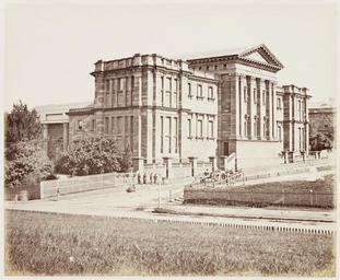 | Keywords: SLNSW 479514 11 Australian Museum SH 564.jpg en 11 Australian Museum SH 564 1872 http //acms sl nsw gov au/item/itemDetailPaged aspx itemID 479514 item <br/>http //acms sl nsw gov au/item/itemDetailPaged aspx itemID 442753 album Pickering Charles Percy New South Wales Government Printing Office This image may be used freely without requesting permission The State Library of New South Wales http //www acmssearch sl nsw gov au/search/itemPopLarger cgi itemID 479514 requests acknowledgement that the image is from the collections of the State Library of NSW Albums 1 album containing 1 sepia 166 albumen photoprints ; 46 5 x 56 8 x 7 8 cm Bequeathed by D S Mitchell 1907 ; Transfer from Mitchell Library Printed Books X981 1/5 in 1985 Out of copyright - Created before 1955 Titles of photographs are printed on album page below image ; Printed on title page Photographs / of / Public and Other Buildings c / Taken by Authority of / The Government of New South Wales / At the request of / The Secretary of State for the Colonies / The negatives were taken by Mr Charles Pickering under the direction of James Barnet Esq Colonial Architect / New South Wales Thomas Richards Government Printer - 1872 A printed contents list follows the title page along with text on the port of Sydney ; Each album page has a protective flyleaf and there is a red-brown border drawn around each photograph ; On most album pages at the lower right of image appears a handwritten SH and a number in pencil This referes to the Government Printing Office file number with SH denoting John Sharkey who possessed a large number of Charles Pickering's negatives -- Reference Alan Clifford Government Printing Office 1985 ; Nos 131-140 were taken from Government House Tower; D S Mitchell signature on title page New South Wales Government Printing Office Clio ship ; Galatea Ship David Scott Mitchell Collection botanical gardens; bridges; cathedrals; churches; courthouses; harbours; islands; mortuaries; observatories; offices; official buildings; post offices; prisons; schools colleges; ships; statues; streetscapes Abattoirs Glebe Island N S W ; Australian Museum Sydney N S W ; Bank of Australasia Sydney N S W ; Darlinghurst Court House Darlinghurst N S W ; Darlinghurst Gaol N S W ; Exhibition Building Prince Alfred Park N S W ; Glebe Island Bridge Sydney N S W ; Government House Sydney N S W ; Lassetter Co 421 George Street Sydney N S W ; Mort's Wool Stores Circular Quay Sydney N S W ; Old Treasury Building Sydney N S W ; Royal Botanic Gardens Sydney N S W ; Stock Exchange Bridge Gresham Streets Sydney N S W ; Victoria Club Sydney N S W Album ID 823409 SLNSW-image 479514 PD-Australia PD-1996 Australia Images from the State Library of NSW album 442753 SLNSW media uploaded by User 99of9 Australian Museum 1872 in Sydney Photographs by Charles Percy Pickering |