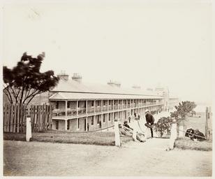 | Keywords: SLNSW 479529 26 Victoria Barracks Mens Quarters SH 568.jpg en 26 Victoria Barracks Men's Quarters SH 568 1872 http //acms sl nsw gov au/item/itemDetailPaged aspx itemID 479529 item <br/>http //acms sl nsw gov au/item/itemDetailPaged aspx itemID 442753 album Pickering Charles Percy New South Wales Government Printing Office This image may be used freely without requesting permission The State Library of New South Wales http //www acmssearch sl nsw gov au/search/itemPopLarger cgi itemID 479529 requests acknowledgement that the image is from the collections of the State Library of NSW Albums 1 album containing 1 sepia 166 albumen photoprints ; 46 5 x 56 8 x 7 8 cm Bequeathed by D S Mitchell 1907 ; Transfer from Mitchell Library Printed Books X981 1/5 in 1985 Out of copyright - Created before 1955 Titles of photographs are printed on album page below image ; Printed on title page Photographs / of / Public and Other Buildings c / Taken by Authority of / The Government of New South Wales / At the request of / The Secretary of State for the Colonies / The negatives were taken by Mr Charles Pickering under the direction of James Barnet Esq Colonial Architect / New South Wales Thomas Richards Government Printer - 1872 A printed contents list follows the title page along with text on the port of Sydney ; Each album page has a protective flyleaf and there is a red-brown border drawn around each photograph ; On most album pages at the lower right of image appears a handwritten SH and a number in pencil This referes to the Government Printing Office file number with SH denoting John Sharkey who possessed a large number of Charles Pickering's negatives -- Reference Alan Clifford Government Printing Office 1985 ; Nos 131-140 were taken from Government House Tower; D S Mitchell signature on title page New South Wales Government Printing Office Clio ship ; Galatea Ship David Scott Mitchell Collection botanical gardens; bridges; cathedrals; churches; courthouses; harbours; islands; mortuaries; observatories; offices; official buildings; post offices; prisons; schools colleges; ships; statues; streetscapes Abattoirs Glebe Island N S W ; Australian Museum Sydney N S W ; Bank of Australasia Sydney N S W ; Darlinghurst Court House Darlinghurst N S W ; Darlinghurst Gaol N S W ; Exhibition Building Prince Alfred Park N S W ; Glebe Island Bridge Sydney N S W ; Government House Sydney N S W ; Lassetter Co 421 George Street Sydney N S W ; Mort's Wool Stores Circular Quay Sydney N S W ; Old Treasury Building Sydney N S W ; Royal Botanic Gardens Sydney N S W ; Stock Exchange Bridge Gresham Streets Sydney N S W ; Victoria Club Sydney N S W Album ID 823409 SLNSW-image 479529 PD-Australia PD-1996 Australia Images from the State Library of NSW album 442753 SLNSW media uploaded by User 99of9 Buildings in Sydney 1872 in Sydney Photographs by Charles Percy Pickering |