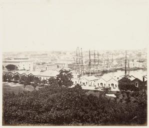| Keywords: SLNSW 479636 133 Sydney Panoramic SH 645647 657.jpg en 133 Sydney Panoramic SH 645-647 657 1872 http //acms sl nsw gov au/item/itemDetailPaged aspx itemID 479636 item <br/>http //acms sl nsw gov au/item/itemDetailPaged aspx itemID 442753 album Pickering Charles Percy New South Wales Government Printing Office This image may be used freely without requesting permission The State Library of New South Wales http //www acmssearch sl nsw gov au/search/itemPopLarger cgi itemID 479636 requests acknowledgement that the image is from the collections of the State Library of NSW Albums 1 album containing 1 sepia 166 albumen photoprints ; 46 5 x 56 8 x 7 8 cm Bequeathed by D S Mitchell 1907 ; Transfer from Mitchell Library Printed Books X981 1/5 in 1985 Out of copyright - Created before 1955 Titles of photographs are printed on album page below image ; Printed on title page Photographs / of / Public and Other Buildings c / Taken by Authority of / The Government of New South Wales / At the request of / The Secretary of State for the Colonies / The negatives were taken by Mr Charles Pickering under the direction of James Barnet Esq Colonial Architect / New South Wales Thomas Richards Government Printer - 1872 A printed contents list follows the title page along with text on the port of Sydney ; Each album page has a protective flyleaf and there is a red-brown border drawn around each photograph ; On most album pages at the lower right of image appears a handwritten SH and a number in pencil This referes to the Government Printing Office file number with SH denoting John Sharkey who possessed a large number of Charles Pickering's negatives -- Reference Alan Clifford Government Printing Office 1985 ; Nos 131-140 were taken from Government House Tower; D S Mitchell signature on title page New South Wales Government Printing Office Clio ship ; Galatea Ship David Scott Mitchell Collection botanical gardens; bridges; cathedrals; churches; courthouses; harbours; islands; mortuaries; observatories; offices; official buildings; post offices; prisons; schools colleges; ships; statues; streetscapes Abattoirs Glebe Island N S W ; Australian Museum Sydney N S W ; Bank of Australasia Sydney N S W ; Darlinghurst Court House Darlinghurst N S W ; Darlinghurst Gaol N S W ; Exhibition Building Prince Alfred Park N S W ; Glebe Island Bridge Sydney N S W ; Government House Sydney N S W ; Lassetter Co 421 George Street Sydney N S W ; Mort's Wool Stores Circular Quay Sydney N S W ; Old Treasury Building Sydney N S W ; Royal Botanic Gardens Sydney N S W ; Stock Exchange Bridge Gresham Streets Sydney N S W ; Victoria Club Sydney N S W Album ID 823409 SLNSW-image 479636 PD-Australia PD-1996 Australia Images from the State Library of NSW album 442753 SLNSW media uploaded by User 99of9 Buildings in Sydney 1872 in Sydney Photographs by Charles Percy Pickering |