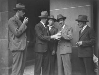 | Keywords: SLNSW 66337 Murray the Escapologist second from right has handcuffs fitted by detectives.jpg en Murray the Escapologist second from right has handcuffs fitted by detectives 1928-02 http //www acmssearch sl nsw gov au/search/itemDetailPaged cgi itemID 66337 item <br/>http //www acmssearch sl nsw gov au/search/itemDetailPaged cgi itemID 37473 album <br/>http //www acmssearch sl nsw gov au/search/itemDetailPaged cgi itemID 395018 collection Creator Sam Hood This image may be used freely without requesting permission The State Library of New South Wales http //www acmssearch sl nsw gov au/search/itemPopLarger cgi itemID 66337 requests acknowledgement that the image is from the collections of the State Library of NSW User 99of9/SLNSW_extra_metadata_template 66337 Murray the Escapologist second from right has handcuffs fitted by detectives Home and Away - 6381 Feb 1928 Photographs 32812 images copied from glass and cellulose nitrate photonegatives The Library first purchased a large collection of negatives from Gladys Hood in 1972 This collection which included nitrate negatives which have subsequently been copied at DG 0N4 NCY 28-61 was transferred to a videodisc in 1991 and each image indexed individually Ted Hood assisted with the indexing; images were also identified using surviving studio registers The videodisc known as the Home Away disc or simply the Hood collection was digitised in 1996 and mounted on the Internet with upgraded index records via the online catalogue in December 1998 Purchased from Gladys Hood 1972 Copyright restrictions may apply - Photographs in this collection created before 1955 are all out of copyright Photographs created after 1955 are in copyright for the life of creator plus 70 years ; Please acknowledge - Mitchell Library State Library of New South Wales and Courtesy copyright holder 395018 Sam Hood photographic collection 1916-ca 1955 Approximately 44 800 negatives ; 7 309 photographic prints ; 3 boxes of textual material ; 6 film reels The Library first purchased a large collection of negatives from Gladys Hood in 1972 This collection which included nitrate negatives which have subsequently been copied at DG 0N4 NCY 28-61 was transferred to a videodisc in 1991 and each image indexed individually Ted Hood assisted with the indexing; images were also identified using surviving studio registers The videodisc known as the Home Away disc or simply the Hood collection was digitised in 1996 and mounted on the Internet with upgraded index records via the online catalogue in December 1998 ; Another collection from Sam Hood's studio was purchased in 1993 from Gladys Hood's descendants This comprised 7300 photoprints PXE 789 and ca 12000 negatives ON 204 Digitisation of important photographs in PXE 789 began Mar 2002 but ON 204 has not been digitised and must be viewed at the Library Samuel J Hood's 1872-1953 claimed to have been born 1870 but the South Australian Birth Index gives date as 20 August 1872 His career as a photographer began in the 1880s ; He ran a successful business in ships portraits these negatives are now held by the Australian National Maritime Museum Sydney and portraits of people in the late nineteenth - early twentieth century The State Library has little representation of this period In 1918 he acquired the Dalny Studio at 124 Pitt Street and began to expand his business into press photography providing photographs for the Sydney Mail the Australasian the Daily Guardian the Daily Telegraph Pictorial the Labor Daily the Sun the Daily News and the Sydney Morning Herald Press photography increasingly came to dominate his business and in 1934 he joined the Labor Daily for a short time as a full-time photographer engaging other staff to look after his studio ; By the mid-1930s most newspapers employed their own photographers and Hood's commissions from the papers began to decline Hood sought other kinds of commissions and won a number of long term advertising and commercial contracts He contributed a number of photographs of Sydney buildings and streets to Building Construction and Australasian Engineer during the late 1930s and early 1940s Hood also had extensive contacts in the entertainment industry who called upon him to document celebrity events and stars as well as theatre advertising Throughout his career he worked at the stock-in-trade for commercial photographers portraits weddings and even funerals ; A number of photographers worked for Dalny Studio some of these include Ernie Bowen Gus Daley Jack Lazern Lethington Maitland as well as Sam's own children Gladys and Ted ; For detailed biographical information about photographer Sam Hood see Sydney exposures through the eyes of Sam Hood his Studio 1925-1950 / Alan Davies Sydney State Library of New South Wales 1991 Out of copyright - Created before 1955 Photographs ; Please acknowledge - Mitchell Library State Library of New South Wales advertising photography; commercial photography; photojournalism 395018 Original item no DG ON4/6381 SLNSW-image 66337 yes PD-Australia PD-1996 Australia Images from the State Library of NSW album 37473 SLNSW media uploaded by User 99of9 Photographs by Sam Hood People in handcuffs Escapologists |