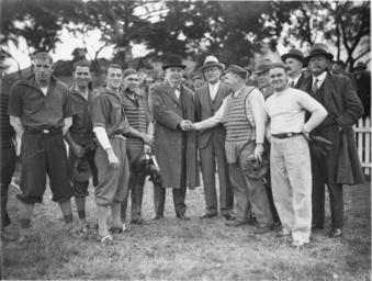 | Keywords: SLNSW 6776 Mr Peters of Peters Icecream Company shakes hands with the Mariposa crews catcher Redfern Oval 29 May 1934.jpg en Mr Peters of Peters' Ice-cream Company shakes hands with the Mariposa crew's catcher Redfern Oval 29 May 1934 29 May 1934 http //www acmssearch sl nsw gov au/search/itemDetailPaged cgi itemID 6776 item <br/>http //www acmssearch sl nsw gov au/search/itemDetailPaged cgi itemID 37473 album <br/>http //www acmssearch sl nsw gov au/search/itemDetailPaged cgi itemID 395018 collection Creator Sam Hood This image may be used freely without requesting permission The State Library of New South Wales http //www acmssearch sl nsw gov au/search/itemPopLarger cgi itemID 6776 requests acknowledgement that the image is from the collections of the State Library of NSW User 99of9/SLNSW_extra_metadata_template 6776 Mr Peters of Peters' Ice-cream Company shakes hands with the Mariposa crew's catcher Redfern Oval 29 May 1934 Home and Away - 3901 29 May 1934 Photographs 32812 images copied from glass and cellulose nitrate photonegatives The Library first purchased a large collection of negatives from Gladys Hood in 1972 This collection which included nitrate negatives which have subsequently been copied at DG 0N4 NCY 28-61 was transferred to a videodisc in 1991 and each image indexed individually Ted Hood assisted with the indexing; images were also identified using surviving studio registers The videodisc known as the Home Away disc or simply the Hood collection was digitised in 1996 and mounted on the Internet with upgraded index records via the online catalogue in December 1998 Purchased from Gladys Hood 1972 Copyright restrictions may apply - Photographs in this collection created before 1955 are all out of copyright Photographs created after 1955 are in copyright for the life of creator plus 70 years ; Please acknowledge - Mitchell Library State Library of New South Wales and Courtesy copyright holder 395018 Sam Hood photographic collection 1916-ca 1955 Approximately 44 800 negatives ; 7 309 photographic prints ; 3 boxes of textual material ; 6 film reels The Library first purchased a large collection of negatives from Gladys Hood in 1972 This collection which included nitrate negatives which have subsequently been copied at DG 0N4 NCY 28-61 was transferred to a videodisc in 1991 and each image indexed individually Ted Hood assisted with the indexing; images were also identified using surviving studio registers The videodisc known as the Home Away disc or simply the Hood collection was digitised in 1996 and mounted on the Internet with upgraded index records via the online catalogue in December 1998 ; Another collection from Sam Hood's studio was purchased in 1993 from Gladys Hood's descendants This comprised 7300 photoprints PXE 789 and ca 12000 negatives ON 204 Digitisation of important photographs in PXE 789 began Mar 2002 but ON 204 has not been digitised and must be viewed at the Library Samuel J Hood's 1872-1953 claimed to have been born 1870 but the South Australian Birth Index gives date as 20 August 1872 His career as a photographer began in the 1880s ; He ran a successful business in ships portraits these negatives are now held by the Australian National Maritime Museum Sydney and portraits of people in the late nineteenth - early twentieth century The State Library has little representation of this period In 1918 he acquired the Dalny Studio at 124 Pitt Street and began to expand his business into press photography providing photographs for the Sydney Mail the Australasian the Daily Guardian the Daily Telegraph Pictorial the Labor Daily the Sun the Daily News and the Sydney Morning Herald Press photography increasingly came to dominate his business and in 1934 he joined the Labor Daily for a short time as a full-time photographer engaging other staff to look after his studio ; By the mid-1930s most newspapers employed their own photographers and Hood's commissions from the papers began to decline Hood sought other kinds of commissions and won a number of long term advertising and commercial contracts He contributed a number of photographs of Sydney buildings and streets to Building Construction and Australasian Engineer during the late 1930s and early 1940s Hood also had extensive contacts in the entertainment industry who called upon him to document celebrity events and stars as well as theatre advertising Throughout his career he worked at the stock-in-trade for commercial photographers portraits weddings and even funerals ; A number of photographers worked for Dalny Studio some of these include Ernie Bowen Gus Daley Jack Lazern Lethington Maitland as well as Sam's own children Gladys and Ted ; For detailed biographical information about photographer Sam Hood see Sydney exposures through the eyes of Sam Hood his Studio 1925-1950 / Alan Davies Sydney State Library of New South Wales 1991 Out of copyright - Created before 1955 Photographs ; Please acknowledge - Mitchell Library State Library of New South Wales advertising photography; commercial photography; photojournalism 395018 Original item no DG ON4/3901 yes no PD-Australia PD-1996 Australia Images from the State Library of NSW album 37473 SLNSW media uploaded by User 99of9 Photographs by Sam Hood |