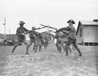 | Keywords: SLNSW 9625 More bayonet practice.jpg en More bayonet practice circa 1932 http //www acmssearch sl nsw gov au/search/itemDetailPaged cgi itemID 9625 item <br/>http //www acmssearch sl nsw gov au/search/itemDetailPaged cgi itemID 37473 album <br/>http //www acmssearch sl nsw gov au/search/itemDetailPaged cgi itemID 395018 collection Creator Sam Hood This image may be used freely without requesting permission The State Library of New South Wales http //www acmssearch sl nsw gov au/search/itemPopLarger cgi itemID 9625 requests acknowledgement that the image is from the collections of the State Library of NSW User 99of9/SLNSW_extra_metadata_template 9625 More bayonet practice Home and Away - 5099 about 1932 Photographs 32812 images copied from glass and cellulose nitrate photonegatives The Library first purchased a large collection of negatives from Gladys Hood in 1972 This collection which included nitrate negatives which have subsequently been copied at DG 0N4 NCY 28-61 was transferred to a videodisc in 1991 and each image indexed individually Ted Hood assisted with the indexing; images were also identified using surviving studio registers The videodisc known as the Home Away disc or simply the Hood collection was digitised in 1996 and mounted on the Internet with upgraded index records via the online catalogue in December 1998 Purchased from Gladys Hood 1972 Copyright restrictions may apply - Photographs in this collection created before 1955 are all out of copyright Photographs created after 1955 are in copyright for the life of creator plus 70 years ; Please acknowledge - Mitchell Library State Library of New South Wales and Courtesy copyright holder 395018 Sam Hood photographic collection 1916-ca 1955 Approximately 44 800 negatives ; 7 309 photographic prints ; 3 boxes of textual material ; 6 film reels The Library first purchased a large collection of negatives from Gladys Hood in 1972 This collection which included nitrate negatives which have subsequently been copied at DG 0N4 NCY 28-61 was transferred to a videodisc in 1991 and each image indexed individually Ted Hood assisted with the indexing; images were also identified using surviving studio registers The videodisc known as the Home Away disc or simply the Hood collection was digitised in 1996 and mounted on the Internet with upgraded index records via the online catalogue in December 1998 ; Another collection from Sam Hood's studio was purchased in 1993 from Gladys Hood's descendants This comprised 7300 photoprints PXE 789 and ca 12000 negatives ON 204 Digitisation of important photographs in PXE 789 began Mar 2002 but ON 204 has not been digitised and must be viewed at the Library Samuel J Hood's 1872-1953 claimed to have been born 1870 but the South Australian Birth Index gives date as 20 August 1872 His career as a photographer began in the 1880s ; He ran a successful business in ships portraits these negatives are now held by the Australian National Maritime Museum Sydney and portraits of people in the late nineteenth - early twentieth century The State Library has little representation of this period In 1918 he acquired the Dalny Studio at 124 Pitt Street and began to expand his business into press photography providing photographs for the Sydney Mail the Australasian the Daily Guardian the Daily Telegraph Pictorial the Labor Daily the Sun the Daily News and the Sydney Morning Herald Press photography increasingly came to dominate his business and in 1934 he joined the Labor Daily for a short time as a full-time photographer engaging other staff to look after his studio ; By the mid-1930s most newspapers employed their own photographers and Hood's commissions from the papers began to decline Hood sought other kinds of commissions and won a number of long term advertising and commercial contracts He contributed a number of photographs of Sydney buildings and streets to Building Construction and Australasian Engineer during the late 1930s and early 1940s Hood also had extensive contacts in the entertainment industry who called upon him to document celebrity events and stars as well as theatre advertising Throughout his career he worked at the stock-in-trade for commercial photographers portraits weddings and even funerals ; A number of photographers worked for Dalny Studio some of these include Ernie Bowen Gus Daley Jack Lazern Lethington Maitland as well as Sam's own children Gladys and Ted ; For detailed biographical information about photographer Sam Hood see Sydney exposures through the eyes of Sam Hood his Studio 1925-1950 / Alan Davies Sydney State Library of New South Wales 1991 Out of copyright - Created before 1955 Photographs ; Please acknowledge - Mitchell Library State Library of New South Wales advertising photography; commercial photography; photojournalism 395018 Original item no DG ON4/5099 yes no PD-Australia PD-1996 Australia Images from the State Library of NSW album 37473 SLNSW media uploaded by User 99of9 Photographs by Sam Hood Bayonets |