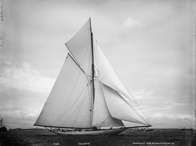 Keywords: Sloop Colonia-8.jpg Nathanael Greene Herreshoff design 1893 built as a defence candidate for the America's Cup She is pictured here on the day of the Ogden Goelet Cup in Newport RI which she won in a drifting match which ended in fog and a comical quiproquo with the flagship over which of the four cup contenders had actually won http //query nytimes com/mem/archive-free/pdf res FA0815F63F5A1A738DDDAA0994D0405B8385F0D3 New York Times - Colonia won the Goelet Cup LOC-image det 4a21579 Creator John S Johnston 1893-08-11 PD-Detroit Colonia ship 1893 Boats under sail Photographs by John S Johnston Black and white photographs |
