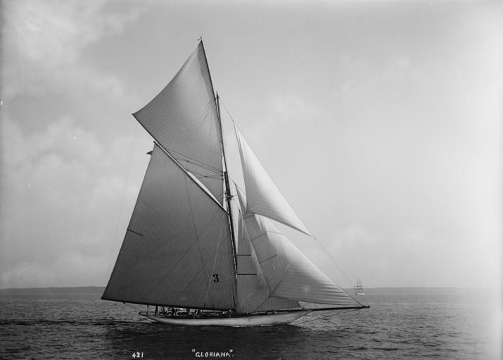 Keywords: Sloop Gloriana-14.jpg Nathanael Greene Herreshoff 1891 won the first six races in the first season of the all new 46-footer class before she was removed from racing She announced Herreshoff's return to sailboat racing after the loss of his steam license in 1888 and the death of his friend Edward Burgess in 1891 She is pictured here on June 23rd 1891 in the Atlantic Yacht Club's four-hundred-dollar-cup race which she won http //query nytimes com/mem/archive-free/pdf res 9B02E1D9173AE533A25757C2A9609C94609ED7CF New York Times - Sayonara was in second LOC-image det 4a21679 Creator John S Johnston 1891-06-23 PD-Detroit Gloriana ship 1891 Photographs by John S Johnston Boats under sail Black and white photographs |