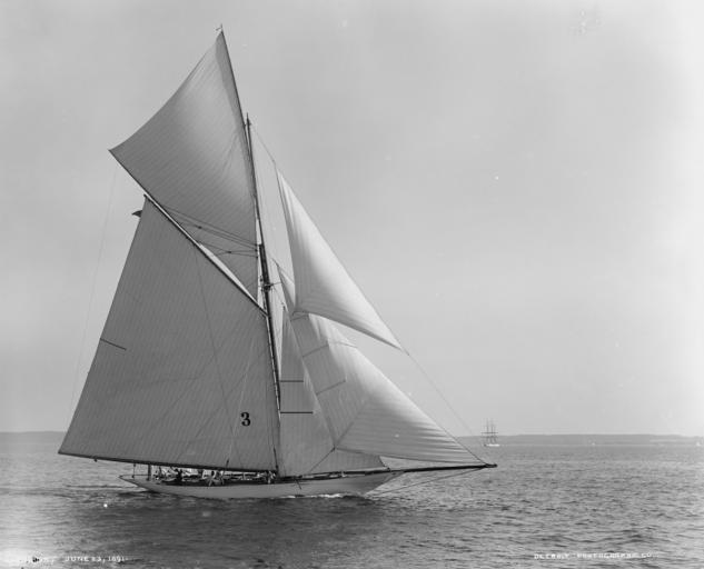 Keywords: Sloop Gloriana-3.jpg Nathanael Greene Herreshoff 1891 won the first six races in the first season of the all new 46-footer class before she was removed from racing She announced Herreshoff's return to sailboat racing after the loss of his steam license in 1888 and the death of his friend Edward Burgess in 1891 She is pictured here on June 23rd 1891 in the Atlantic Yacht Club's four-hundred-dollar-cup race which she won http //query nytimes com/mem/archive-free/pdf res 9B02E1D9173AE533A25757C2A9609C94609ED7CF New York Times - Sayonara was in second LOC-image det 4a04505 1891-06-23 PD-Detroit Gloriana ship 1891 Black and white photographs Boats under sail |
