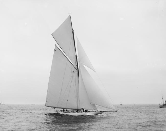 Keywords: Sloop Reliance-3.jpg America's Cup defender Reliance coming for the line Aug 20 1903 LOC-image det 4a15389 1903-08-20 PD-Detroit Reliance ship 1903 Boats under sail Black and white photographs