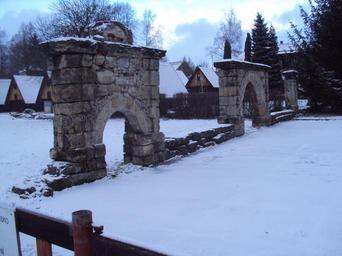 Keywords: Sloup za hradem.JPG cs Brány po zbořeném Berkovském zámečku ve Sloupu v Čechách own Zákupák 2012-01-11 Berkovský zámeček Sloup v Čechách