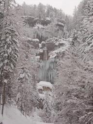 Keywords: slovenia landscape winter snow ice icicles waterfall cascade frozen forest trees woods nature outside country countryside rocks cliff