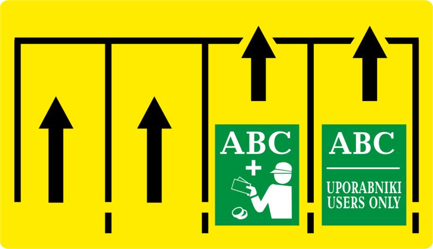 Keywords: Slovenia road sign III-100.svg en Select toll collection lanes sl Razvrščanje vozil na območju cestninske postaje 2014-05-31 Highway Code Government of Slovenia PD-Slovenia-exempt Diagrams of road signs of Slovenia Toll road signs