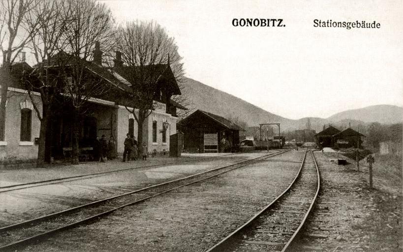 | Keywords: Slovenske Konjice (Gonobitz)-former train station 1902.jpg en Former train station in Slovenske Konjice prior 1918 known under the German name Gonobitz Slovenia The train station building was torn down a few years after 1962 when the narrow gauge railway Poljčane - Slovenske Konjice - Zreče was abandoned sl Nekdanja železniška postaja v Slovenskih Konjicah do leta 1918 znane pod nemškim imenom Gonobitz Postajna zgradba je bila porušena nekaj let po 1962 ko je bila ukinjena in razdrta ozkotirna železnica Poljčane - Slovenske Konjice - Zreče Slovenske Konjice municipality - collection of historic postcards http //www slovenskekonjice si/eu/index php option com_rsgallery2 page inline id 150 Itemid 130 Hugo Detiček ~ 1902 Postcards of Slovenske Konjice Disused train stations in Slovenia train stations in Slovenia by name Rail transport in Slovenske Konjice 20th-century images of Slovenia 1902 postcards of Slovenia Postcards of train stations in Slovenia PD-old |