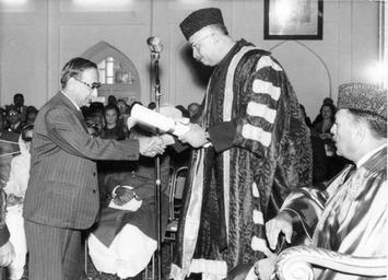 | Keywords: SM Ikram receiving DLitt Degree.jpeg en The Nawab of Kalabagh awarding an honorary doctor of letters degree at the University of Punjab Lahore to Sheikh Muhammad Ikram Ayub Khan President of Pakistan is seated at right Early 1960s Award recipient's family Anonymous official photographer other versions 31 5497 74 3436 The degree is being awarded by the Nawab of Kalabagh Seated at right is Ayub Khan President of Pakistan Custom license marker 2015 04 24 PD-Pakistan Uploaded with UploadWizard S M Ikram Sheikh Muhammad Ikram Nawab of Kalabagh Ayub Khan President of Pakistan Punjab University Lahore Pakistan Indian Civil Service officers Urdu Biographers Historians from Pakistan Honoris causa ceremonies |