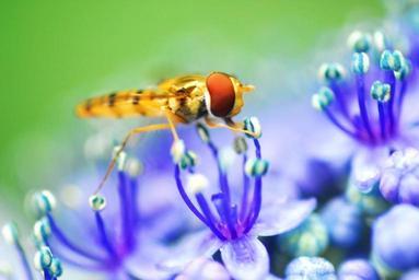 Keywords: small bee to stay in hydrangea insect scene of early summer