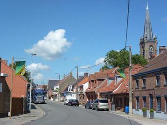 Keywords: street town small main buildings downtown brick shops old quaint midwest stores village clouds historic architecture