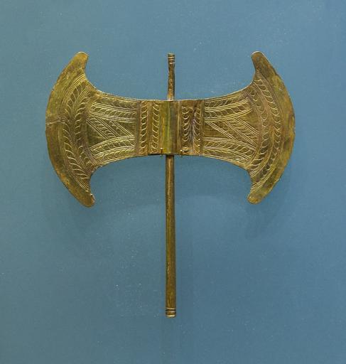 | Keywords: Small golden double head minoan axe archmus Heraklion.jpg en A small golden double head minoan axe Votive jewel Found in Archalokori cave 1700 - 1450 BCE fr Une petite hache double minoenne en or Bijou votif Trouvé dans la grotte d'Archalokori 1700 - 1450 BCE institution Archaeological Museum of Heraklion 2015-02-23 11 47 50 own Jebulon other versions cc-zero Uploaded with UploadWizard Archaeological Museum of Heraklion - Minoan jewellery Labrys Gold jewellery 18th-century BC works in Greece Quality images by Jebulon QualityImage |
