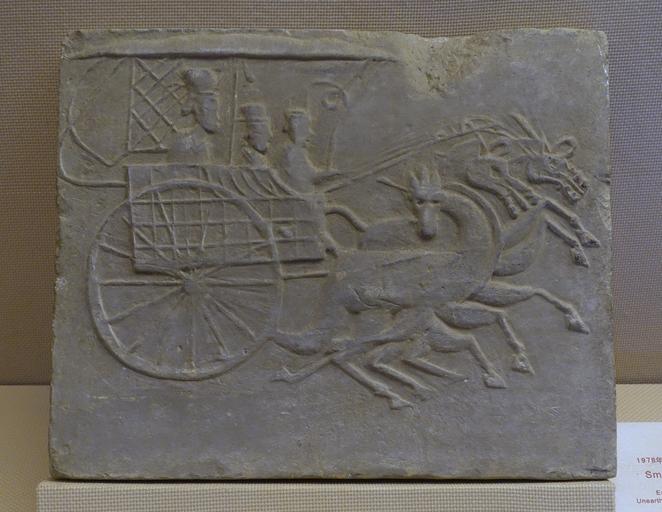 | Keywords: Small horse cart drawn by three horses, China, unearthed at Majia, Xindu District, Chengdu City, Eastern Han dynasty, 25-220 AD, tomb tile - Sichuan Provincial Museum - Chengdu, China - DSC04834.jpg en Exhibit in the Sichuan Provincial Museum 四 博物院 also known as the Sichuan Museum 251 Huanhua S Road Chengdu Sichuan China Photography was permitted in the museum without restriction This work is old enough so that it is in the public domain 2015-09-24 03 54 31 own Daderot other versions PD-old-100 cc-zero Tomb bricks of the Eastern Han Dynasty in the Sichuan Provincial Museum Carriages of the Eastern Han Dynasty |