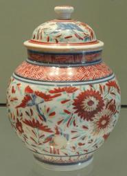 | Keywords: Small Jar with Bird and Flower Design, c. 1670-1680, Arita, hard-paste porcelain with overglaze enamels - Gardiner Museum, Toronto - DSC00439.JPG Exhibit in the Gardiner Museum Toronto Ontario Canada This artwork is in the public domain because the artist died more than 70 years ago Photography was permitted in the museum without restriction Daderot 2012-10-16 14 08 06 Daderot cc0 cc0 Porcelain jars baluster lidded Baluster-shaped jars porcelain lidded Japanese pottery in the Gardiner Museum Animal porcelain patterns |