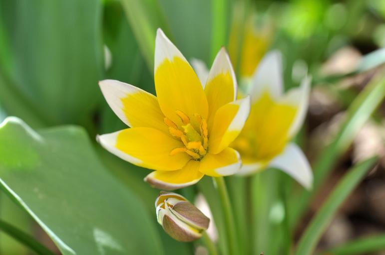 Keywords: small star tulip flower spring flower plant blossom bloom yellow-white garden spring close