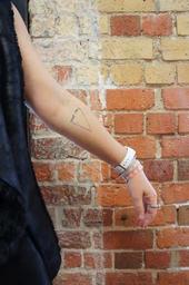 Keywords: small tattoo arm watch brick wall indoors