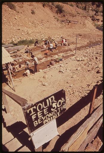 | Keywords: SMALL "TOURIST TRAP" GOLD-MINING OPERATION. AN OLD STEAM SHOVEL IS USED TO GATHER GRAVEL FROM STREAM AND POUR IT INTO... - NARA - 543748.jpg Scope and content General notes 543748 Local identifier 412-DA-1255 Environmental Protection Agency 12/02/1970 - NARA-Author Gillette Bill 1932- Photographer 8464444 <br /> Central City Gilpin Colorado United States North and Central America inhabited place 3314709 39 8 -105 5 <br /> Still Picture Records Section Special Media Archives Services Division NWCS-S National Archives at College Park 8601 Adelphi Road College Park MD 20740-6001 07/1972 Record group Record Group 412 Records of the Environmental Protection Agency 1944 - 2006 Record group ARC 708 DOCUMERICA The Environmental Protection Agency's Program to Photographically Document Subjects of Environmental Concern compiled 1972 - 1977 Series ARC 542493 File unit File unit ARC Variant control numbers Agency-Assigned Identifier 021/55/001255<br /> NAIL Control Number NWDNS-412-DA-1255 Other versions <gallery> File SMALL_ TOURIST_TRAP _GOLD-MINING_OPERATION _AN_OLD_STEAM_SHOVEL_IS_USED_TO_GATHER_GRAVEL_FROM_STREAM_AND_POUR_IT_INTO _-_NARA_-_543748 tif tif File SMALL_ TOURIST_TRAP _GOLD-MINING_OPERATION _AN_OLD_STEAM_SHOVEL_IS_USED_TO_GATHER_GRAVEL_FROM_STREAM_AND_POUR_IT_INTO _-_NARA_-_543748 jpg jpg </gallery> NARA-cooperation PD-USGov Streams of Colorado Mining in Colorado Colorado in the 1970s NARA images of Colorado Tourism in Colorado |