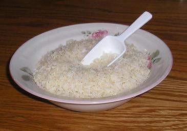 Keywords: Small transfer scoop.JPG Small kitchen transfer scoop in a bowl of rice Own 2008-04-26 MeekMark MeekMark Measuring spoons