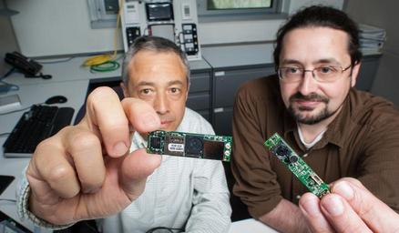 | Keywords: Smartphone case.jpg en March 05 2013 -NREL researchers Luigi Gentile Polese left and Larry Brakney hold the processor and camera that make up the Image Processing Occupancy Sensor IPOS The sensor is based on commercially available embedded hardware widely used by the smart phones industry leverages mature open-source computer vision software libraries and uses modern software engineering techniques and firmware development technologies The IPOS used a synergistic approach with face and people detection through computer vision algorithms The IPOS classifies additional information including the number of occupants and their positions on polar coordinates activity level sedentary/active and communicates this information with building automation systems via standard protocols BACnet others The IPOS is developed and ready for testing implementation Photo by Dennis Schroeder / NREL 2013-05-29 14 28 26 https //www flickr com/photos/departmentofenergy/9442814399 ENERGY GOV other versions ENERGY GOV https //flickr com/photos/37916456 N02/9442814399 2016-06-15 11 10 34 United States Government Work PD-USGov Uncategorized 2016 June 15 |