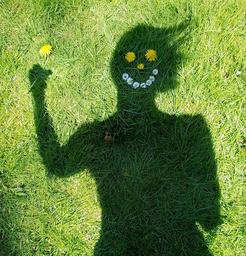 Keywords: smile cheerful luck dandelion green happy daisy shadow human summer grass face fun fantasy