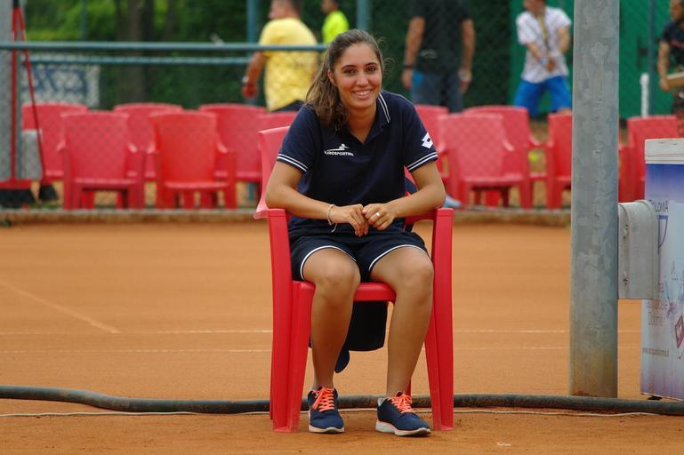 Keywords: smile tennis referee brunette attractive female sport woman tennis happy